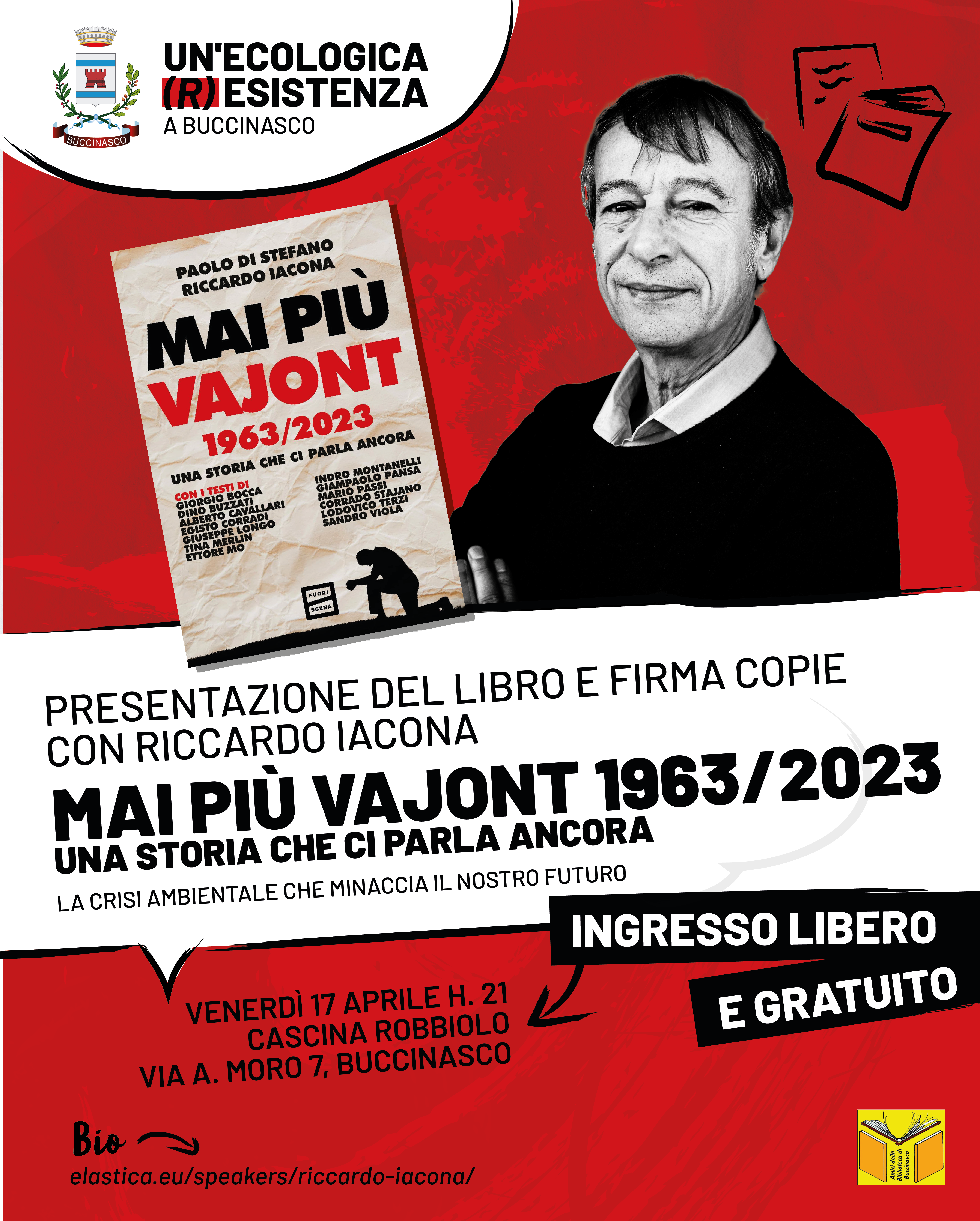 Venerdì 17 aprile alle ore 21 alla Cascina Robbiolo di via Aldo Moro 7 il giornalista Riccardo Iacona, famoso per le sue inchieste con il programma Presa Diretta, presenta il libro “Mai più Vajont”, scritto con il collega del Corriere della Sera Paolo Di Stefano.